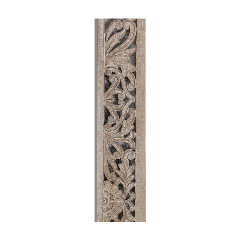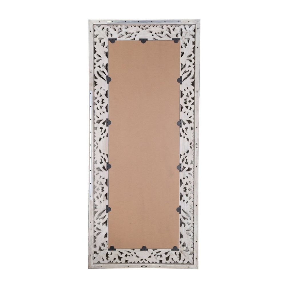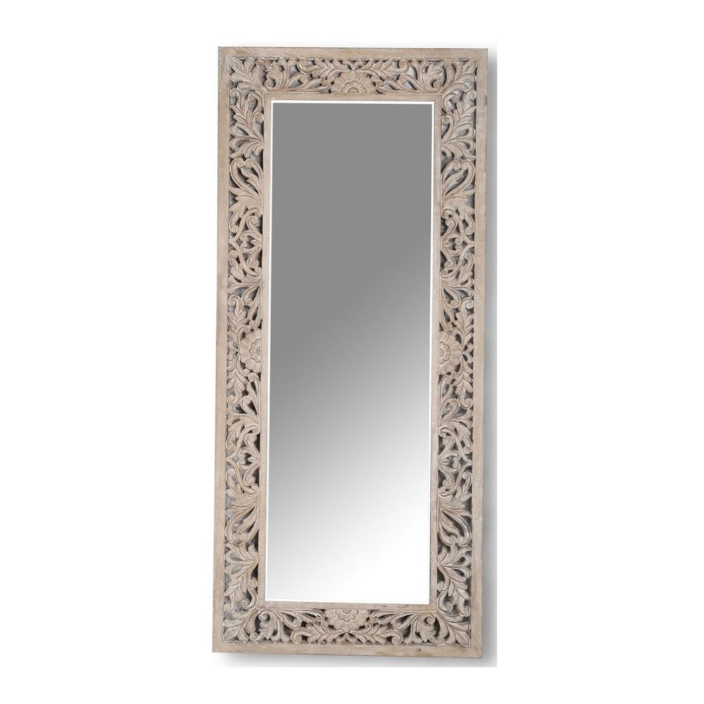 Boho Solid Wood Floor Mirror with Hand-Carved Botanical Motif